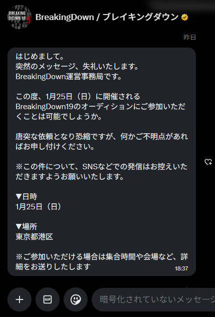 そんなBreakingDownからオーディション参加のオファーを頂いた。