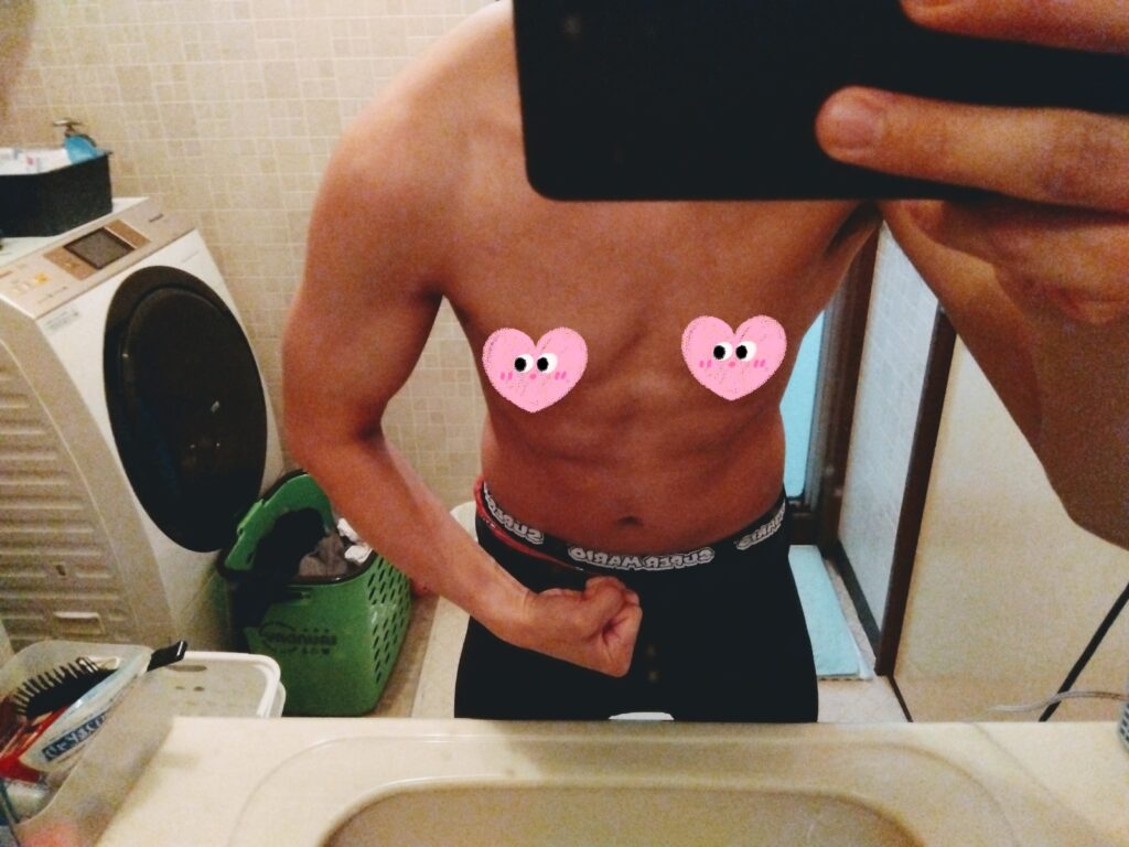 筋トレはなかなか効果が出ないと聞いたが、結構体付きが変わってきたと思うんだ。