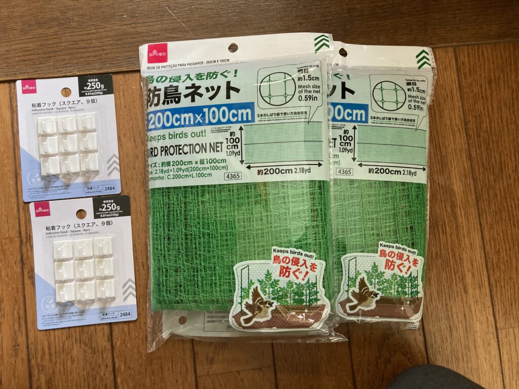 実際このネット張るのも買ったフックが小さすぎて苦労したし。