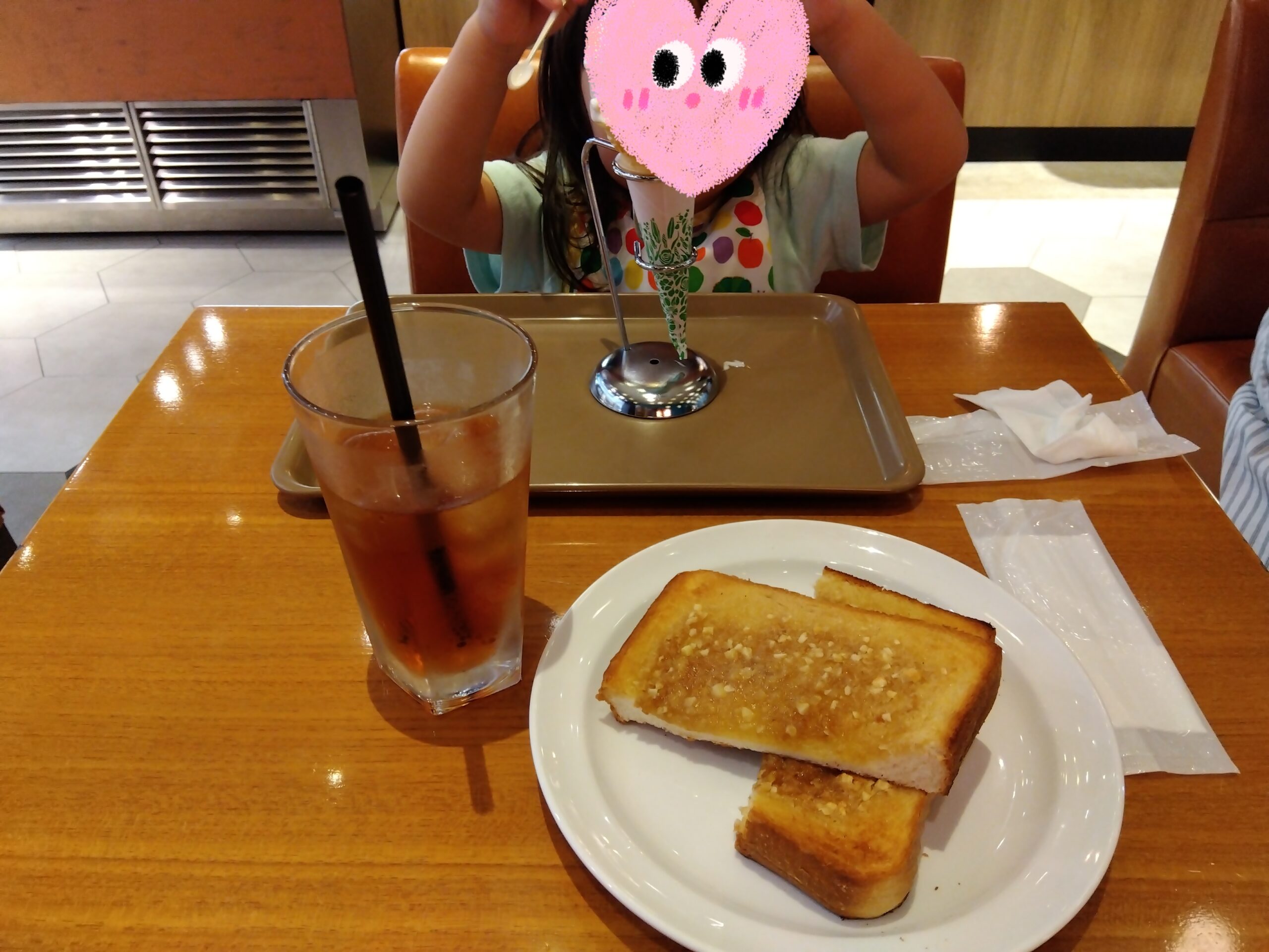 子供達がアイスクリームを食べてる中、僕はアーモンドトーストとアイスティーを優雅に嗜んでいた(笑)