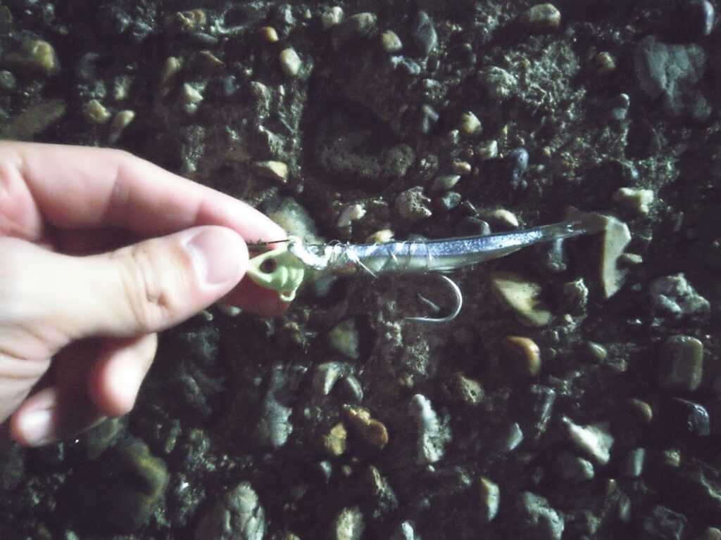 3グラムの軽めのテンヤにキビナゴを装着。