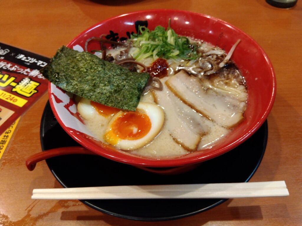 ラーメン屋に入った時間が23時過ぎだったんだけど、「こんな時間にこんなイカついラーメン食う奴いんのかよ」ってチェンソー麺を笑ってたら後から入ってきた女の人が注文してた。